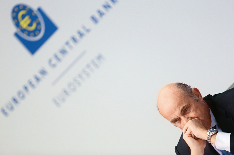 2019年9月12日,歐洲中央銀行宣布下調(diào)歐元區(qū)隔夜存款利率至-0.5%,同時(shí)維持歐元區(qū)主導(dǎo)利率為零、隔夜貸款利率為0.25%不變。這是歐洲央行自2016年3月以來(lái)首次調(diào)降歐元區(qū)關(guān)鍵利率。圖為歐洲央行副行長(zhǎng)德金多斯出席當(dāng)天的新聞發(fā)布會(huì)。 新華社/路透