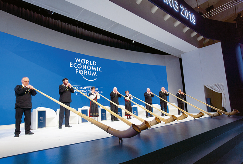 2019年1月22日,世界經(jīng)濟(jì)論壇2019年年會(huì)在瑞士達(dá)沃斯開(kāi)幕。在全球經(jīng)濟(jì)承壓下行,保護(hù)主義、單邊主義、民粹主義不斷抬頭的背景下,論壇創(chuàng)始人兼執(zhí)行主席克勞斯·施瓦布呼吁國(guó)際社會(huì)應(yīng)系統(tǒng)看待全球性挑戰(zhàn),以更加包容、更加可持續(xù)的方式推進(jìn)全球化。圖為開(kāi)幕式上人們吹奏阿爾卑斯長(zhǎng)號(hào)迎接嘉賓。 新華社記者 徐金泉/攝
