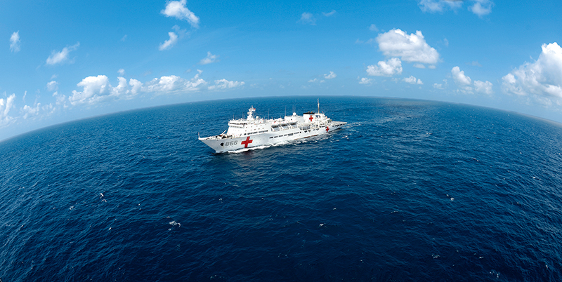 圖為航行在阿拉弗拉海域的中國海軍“和平方舟”號醫(yī)院船。入列以來,“和平方舟”號醫(yī)院船遠航三大洋六大洲,總航程24萬余海里,相當于沿赤道繞地球11圈。 江山/攝