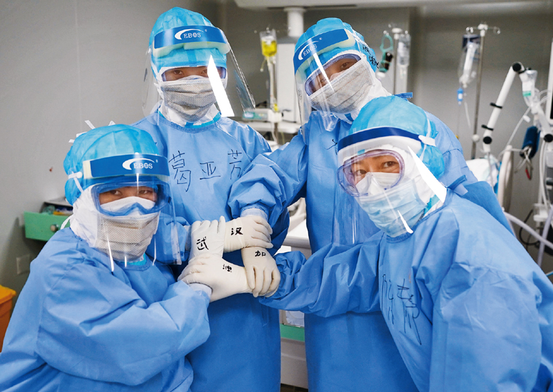 在抗擊新冠肺炎疫情的最前沿“紅區(qū)”,白衣天使們打贏了一場場與病毒的“生死戰(zhàn)”。圖為2020年3月20日,武漢火神山醫(yī)院重癥醫(yī)學(xué)一科的護(hù)士們合影為武漢加油。 新華社記者 王毓國/攝
