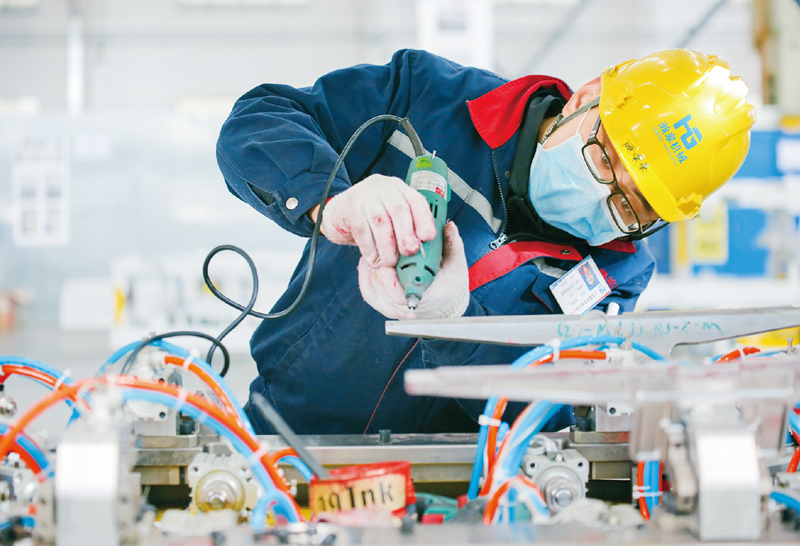 當前疫情仍是妨礙全球產業(yè)鏈供應鏈運轉的重要因素,要按照分區(qū)分級精準防控原則,加快推動企業(yè)復工復產,全力保市場、保訂單、保履約、降成本、防風險,保障產業(yè)鏈供應鏈暢通運轉。圖為2020年2月18日,在江蘇省如皋市如城街道的一家公司生產車間里,工人正在生產線上趕制來自歐洲的訂單。 人民圖片 徐慧/攝