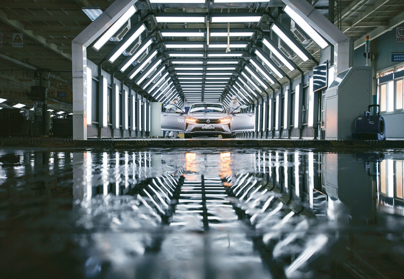 近日,武漢各企業(yè)陸續(xù)復(fù)工復(fù)產(chǎn)。圖為2020年3月24日在東風(fēng)乘用車公司工廠總裝車間的流水線上,工人們加緊生產(chǎn),時(shí)不我待。 新華社記者 肖藝九/攝