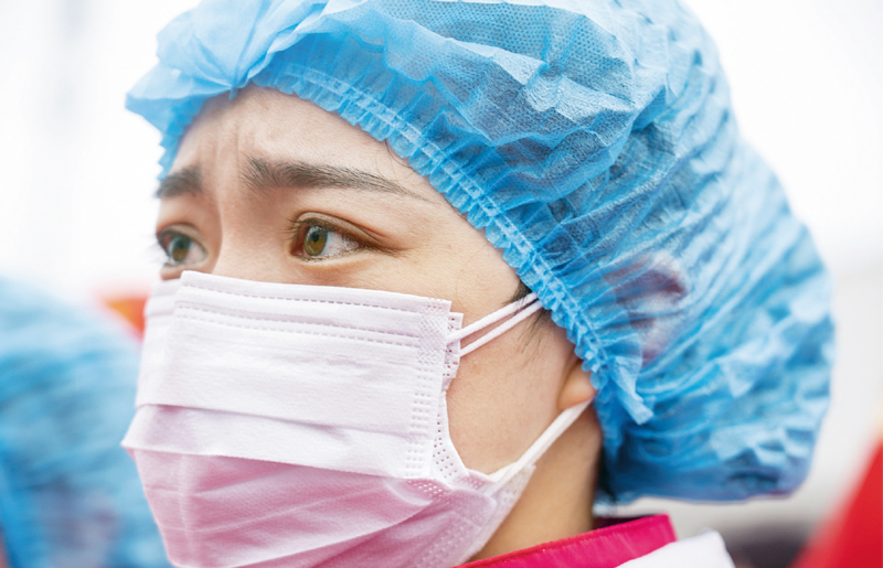 2020年3月29日,在武漢雷神山醫(yī)院舉行的集中撤離儀式上,來(lái)自大連醫(yī)科大學(xué)附屬第一醫(yī)院的護(hù)士熱淚盈眶。當(dāng)日,武漢雷神山醫(yī)院舉行首批外省醫(yī)療隊(duì)集中撤離儀式,送別即將踏上歸途的遼寧、上海、吉林、廣東、山西、河北醫(yī)療隊(duì)的1090名醫(yī)護(hù)人員。 新華社記者 才揚(yáng)/攝