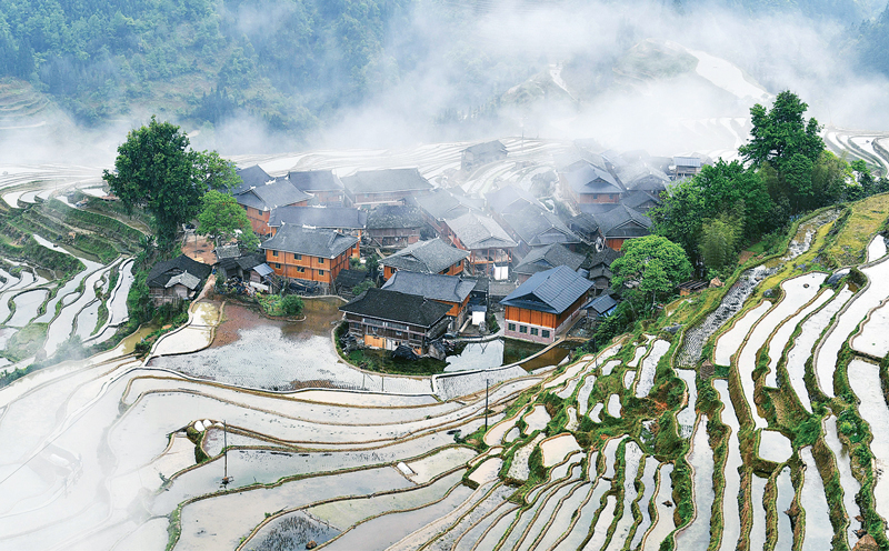 治理農(nóng)業(yè)農(nóng)村污染,是實(shí)施鄉(xiāng)村振興戰(zhàn)略的重要任務(wù),事關(guān)全面建成小康社會(huì),事關(guān)農(nóng)村生態(tài)文明建設(shè)。貴州省從江縣大力推進(jìn)人居環(huán)境整治,對(duì)鄉(xiāng)村規(guī)劃范圍內(nèi)長期無人居住的危房、廢棄禾倉等進(jìn)行清理整治和復(fù)墾復(fù)綠,同時(shí)開展農(nóng)戶衛(wèi)生和村寨環(huán)境整治,做到鄉(xiāng)村環(huán)境干凈、衛(wèi)生、整潔。圖為2020年4月17日拍攝的貴州省從江縣加榜鄉(xiāng)黨扭村苗寨景觀。 新華社記者 楊文斌/攝