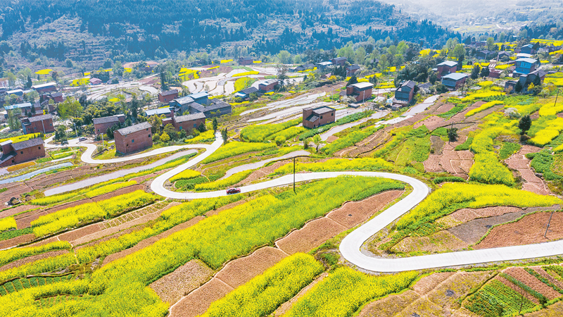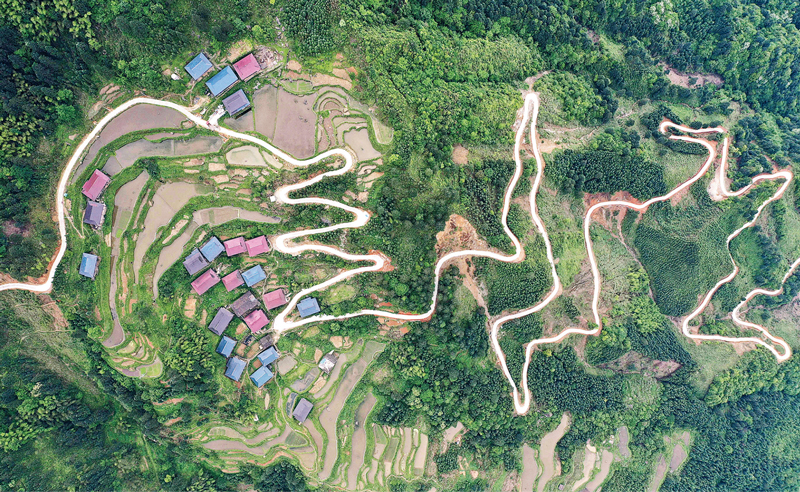 道路通,百業(yè)興。交通扶貧是貧困地區(qū)破解經(jīng)濟社會發(fā)展瓶頸的關鍵。圖為2020年3月19日,重慶市梁平區(qū)福祿鎮(zhèn)樂園村,新修的水泥公路蜿蜒至山區(qū)農(nóng)家,帶動當?shù)剞r(nóng)民發(fā)展產(chǎn)業(yè)增收脫貧。 人民圖片 高小華/攝