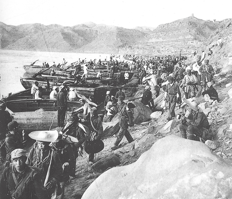 1937年全國抗戰(zhàn)爆發(fā)后,中國共產(chǎn)黨領(lǐng)導以八路軍、新四軍、東北抗日聯(lián)軍、華南游擊隊為主的抗日軍民,與日軍展開了殊死的斗爭,并取得最終勝利。圖為1937年八路軍東渡黃河開赴抗日前線。
