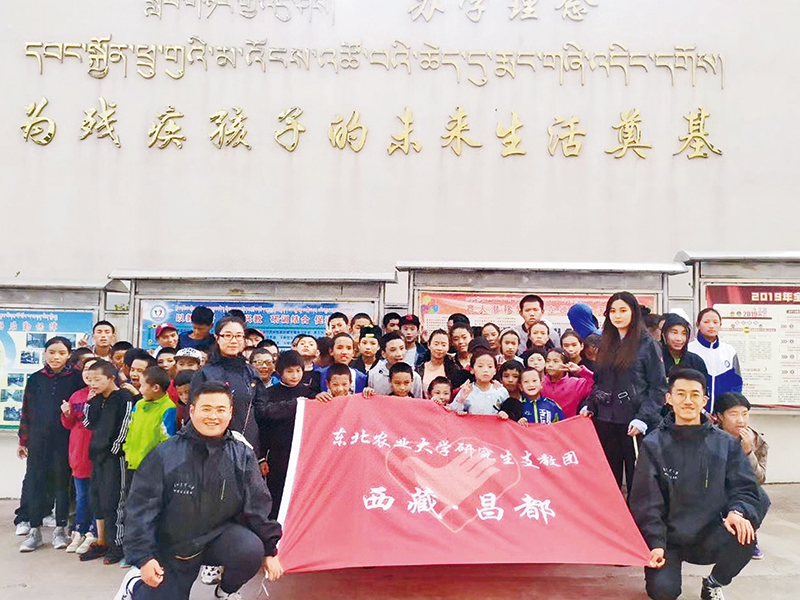習(xí)近平總書記強(qiáng)調(diào),同人民一道拼搏、同祖國(guó)一道前進(jìn),服務(wù)人民、奉獻(xiàn)祖國(guó),是當(dāng)代中國(guó)青年的正確方向。他勉勵(lì)青年人到基層和人民中去建功立業(yè),讓青春之花綻放在祖國(guó)最需要的地方,在實(shí)現(xiàn)中國(guó)夢(mèng)的偉大實(shí)踐中書寫別樣精彩的人生。圖為2020年8月10日,東北農(nóng)業(yè)大學(xué)支教團(tuán)在西藏昌都市支教期間與學(xué)校師生合影。 新華社記者 楊思琪/攝