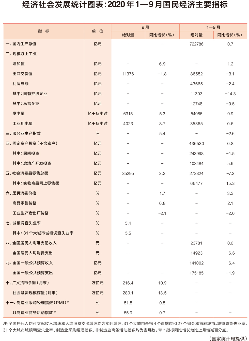 經(jīng)濟(jì)社會發(fā)展統(tǒng)計(jì)圖表:2020年1—9月國民經(jīng)濟(jì)主要指標(biāo)