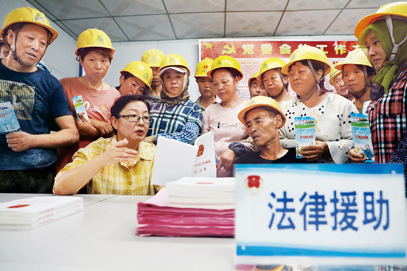2020年8月26日,河北省唐山市豐潤區(qū)司法局組織律師走進社區(qū)、工地,為群眾提供免費法律援助。 人民圖片 朱大勇/攝