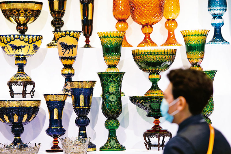 經過3年發(fā)展,中國國際進口博覽會讓展品變商品、讓展商變投資商,交流創(chuàng)意和理念,聯(lián)通中國和世界,成為國際采購、投資促進、人文交流、開放合作的四大平臺,成為全球共享的國際公共產品。圖為2020年11月7日,第三屆進博會消費品展區(qū),波斯文化館展臺展示的各式伊朗傳統(tǒng)工藝品。 中新社記者 侯宇/攝