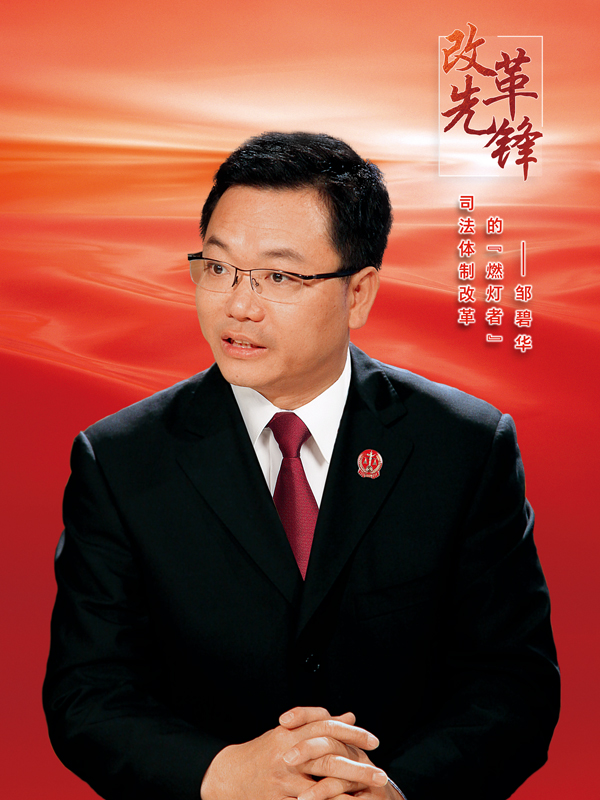 鄒碧華是新時期公正為民的好法官、敢于擔(dān)當(dāng)?shù)暮酶刹?。他崇法尚德,踐行黨的宗旨、捍衛(wèi)公平正義,特別是在司法改革中,敢啃硬骨頭,甘當(dāng)“燃燈者”,生動詮釋了一名共產(chǎn)黨員對黨和人民事業(yè)的忠誠。