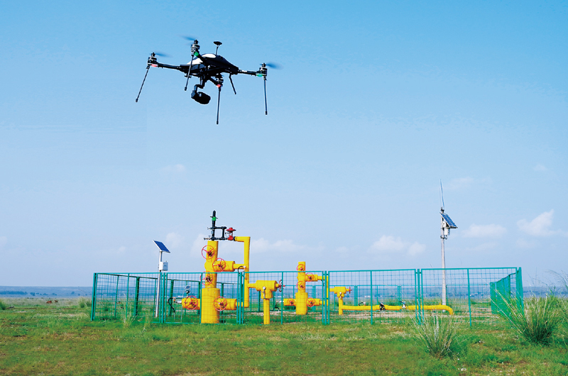 長慶油田加速新一代高新技術(shù)應(yīng)用,以無人機(jī)、智能機(jī)器人代替人工巡線巡檢,有效解決了管線多、站點(diǎn)多、人員少、地面環(huán)境復(fù)雜等問題,應(yīng)急處置能力大幅提升。圖為2020年6月23日,位于蘇里格氣田中部區(qū)域的采氣四廠作業(yè)一區(qū),無人機(jī)正代替人工進(jìn)行巡檢作業(yè)。 長慶油田供圖 徐志武/攝