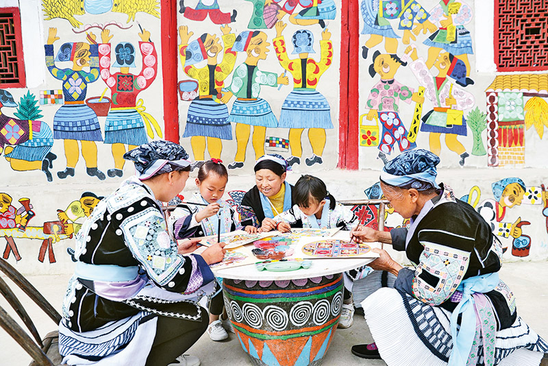 苗畫是反映苗族群眾生活方式和民俗文化的一種藝術(shù)形式。近年來,貴州省黔南布依族苗族自治州龍里縣大力發(fā)展苗畫產(chǎn)業(yè),鼓勵苗族群眾利用苗畫闖市場,傳承民族特色文化,推動鄉(xiāng)村振興。圖為2022年3月19日,龍里縣洗馬鎮(zhèn)平坡村村民在進行苗畫創(chuàng)作。 求是圖片 韓賢普/攝